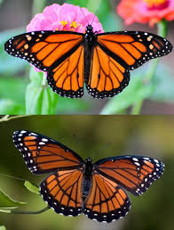 The most distinctive difference is evident here in this comparison photo. The upper is a Monarch, the lower a Viceroy. You can see the black line across the Viceroy's post median hind wing.